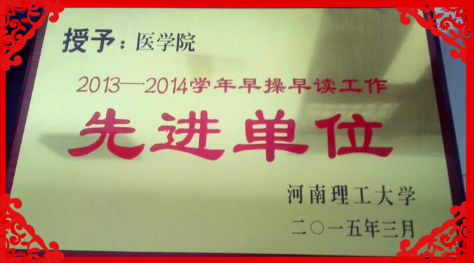 3月20日下午2点30分,在学校圆形报告厅召开河南理工大学2015年度学生工作会议,对2013-2014学年的先进集体和先进个人进行表彰,我院再次荣获“早操早读工作先进单位”称号。