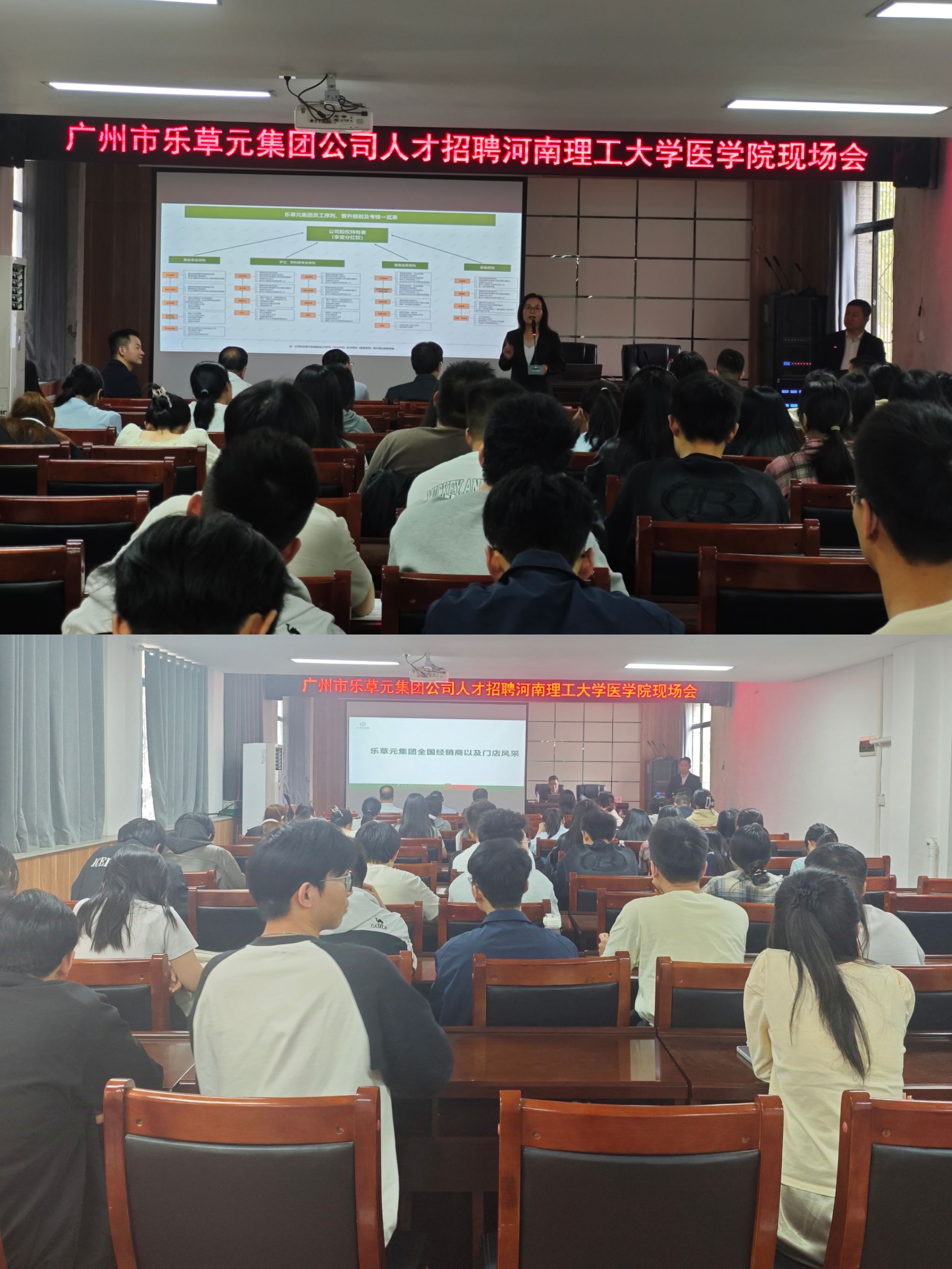 为进一步拓宽毕业生就业渠道,医学院积极对接企业资源,2025年4月9日下午,特邀广东乐草元集团来院举办招聘宣讲会,通过校企协同为毕业生搭建优质就业平台。北京二十一世纪基金会董事长吕军锋、乐草元集团公司董事长周苗青、总经理郭威、业务总监郭德鸿等集团代表受邀出席。医学院党委书记张向锋、院长王振辉、原志庆教授及毕业生师生代表共同参加,宣讲会由王振辉院长主持。