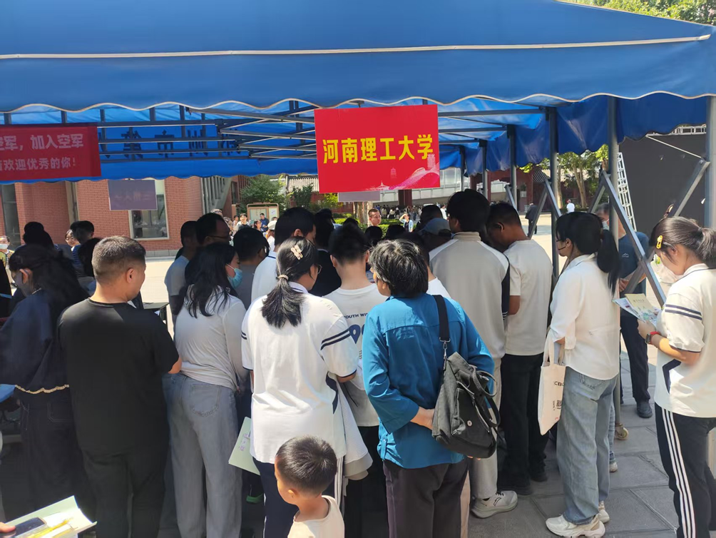 作为活动重要环节,医学院向郑州第九中学授予“河南理工大学优质生源基地”牌匾,并发放学校招生宣传手册。