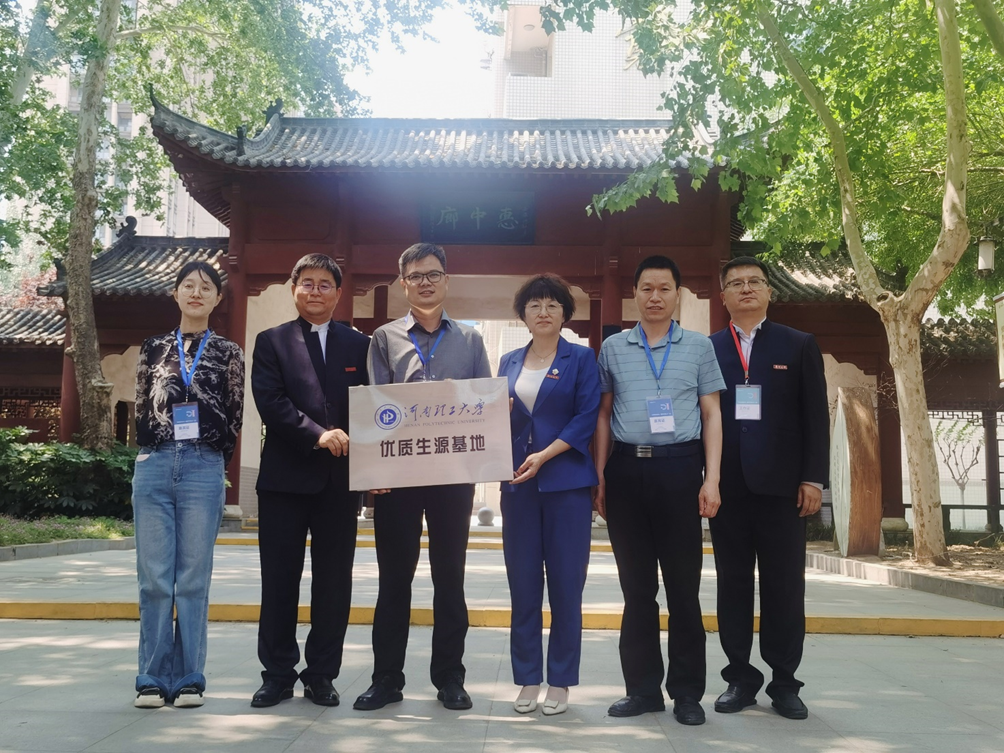 为深入贯彻落实学校“2024-2025学年生源高中建设行动”,提升生源质量,深化校际协同育人,近日,河南德赢VWIN副院长陈文波带队赴郑州第九中学开展招生宣传与“优质生源基地”共建活动。药学系主任孔继川、基础医学部主任李胜楠共同参与,并与该校师生展开深入交流。