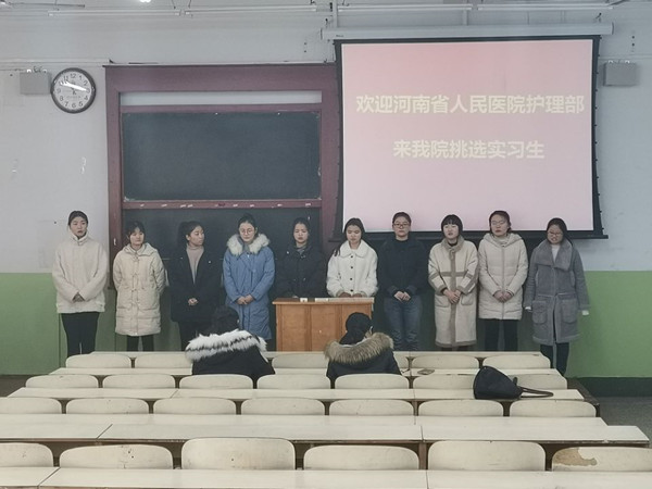 2020年1月3日上午,河南省人民医院来我院面试选拔2021届护理专业实习生,面试在2202教室举行。本次参加面试的学生包括我院的2017级护理本科、2018级护理专科生及河南理工大学鹤壁工程技术学院的2017级护理本科生,共122名学生。