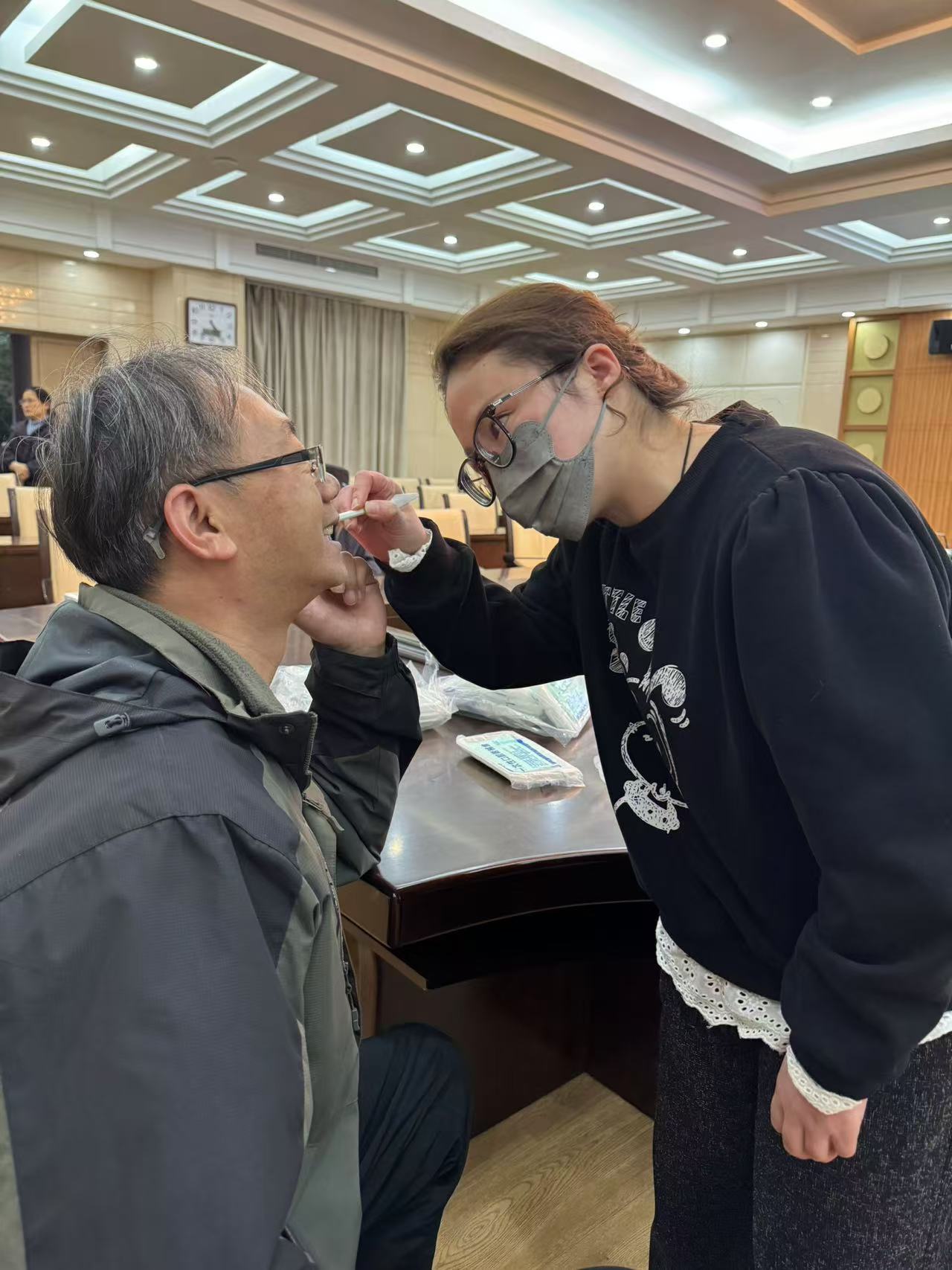 讲座结束后,紧接着开展了义诊活动。张时松老师现场为教工们进行了口腔检查,包括牙齿、牙龈、口腔黏膜等方面的细致检查,并针对每位教工的口腔状况给出了个性化的治疗建议和日常护理指导。义诊现场气氛热烈而有序,教工们积极参与,纷纷表示这样的活动非常实用且贴心。
