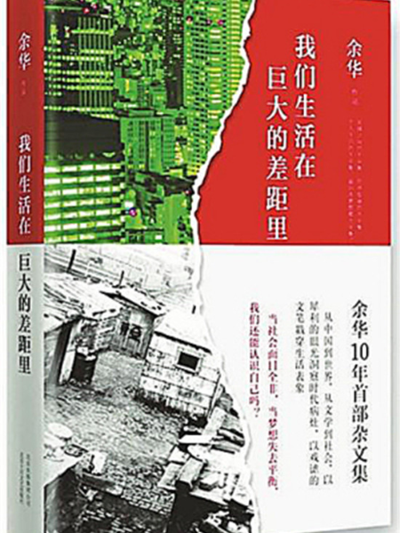 《我们生活在巨大的差距里》延续了余华晚近小说《兄弟》《第七天》的风格,直面现实、针砭现实。书中,余华直言不讳地指出当下中国的“不平衡”现象:区域之间不平衡、经济发展不平衡、个人生活不平衡、心理的不平衡,最后连梦想都不平衡;《一个国家,两个世界》则尖锐反思个人主义的极端化:从极端压抑,到过度放纵;《奥运会与比尔·盖茨之杠杆》对唯利是图、无所不用其极的拜金主义风气予以了批判。在这类写作中,余华保持着他一贯的敏锐、警觉和批判意识,一针见血指出社会与人心之痼疾所在,言语之间满是焦灼和忧虑,迫切希望找到破题和解决的方法。