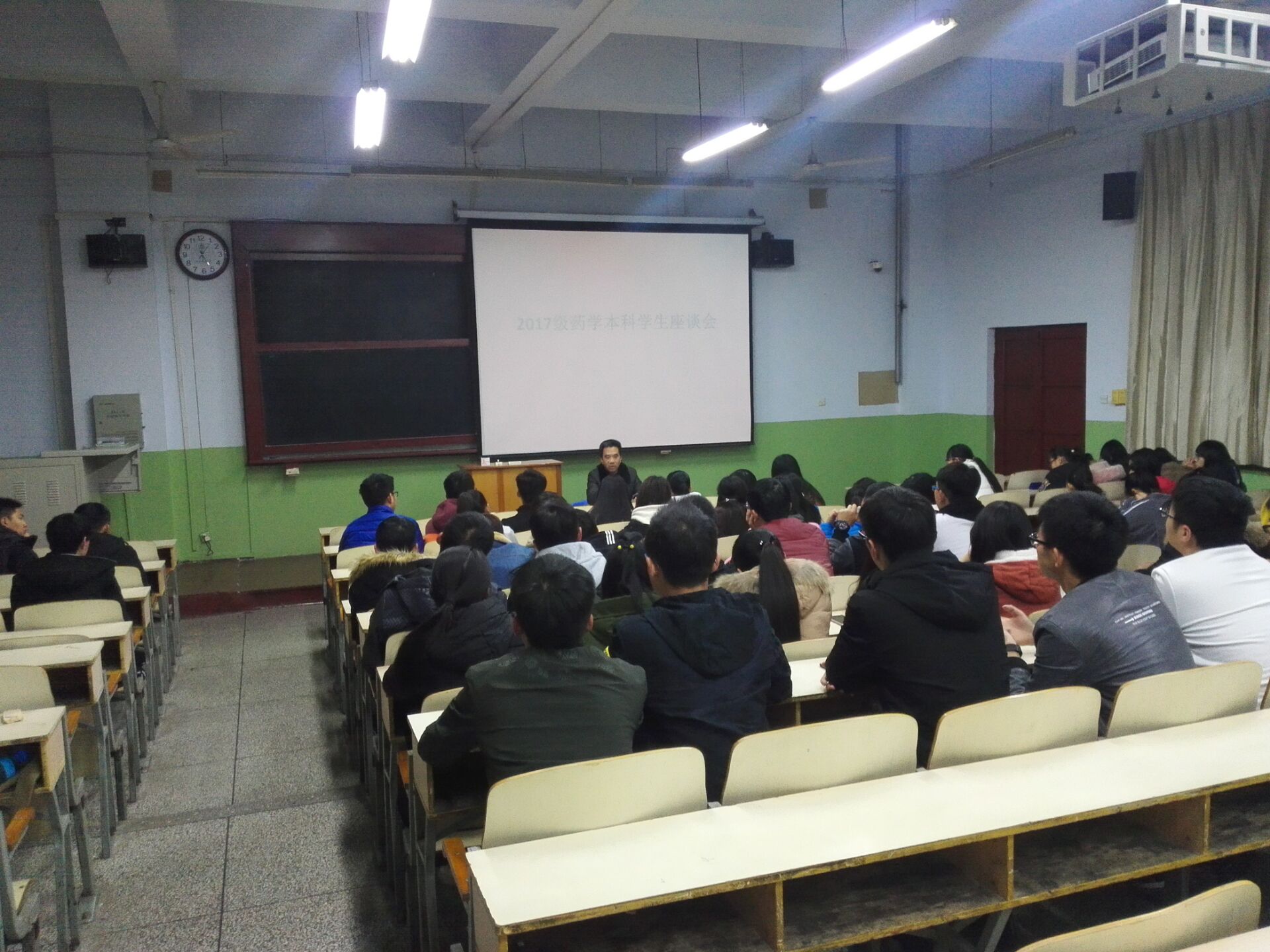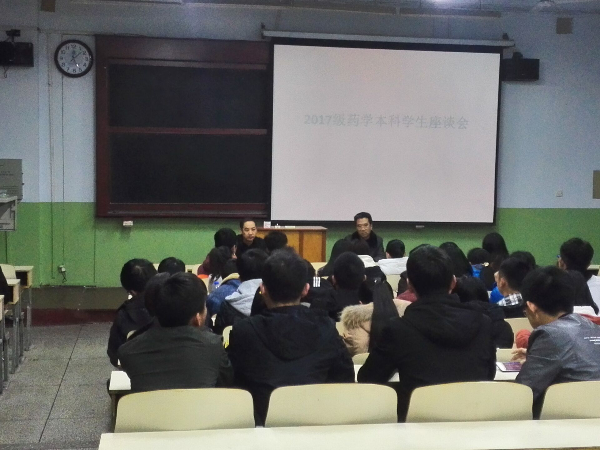 11月29日下午,医学院党委书记李培富和2017级药学本科学生在2104教室座谈,听取学生入校以来在学习和生活方面的意见和建议。