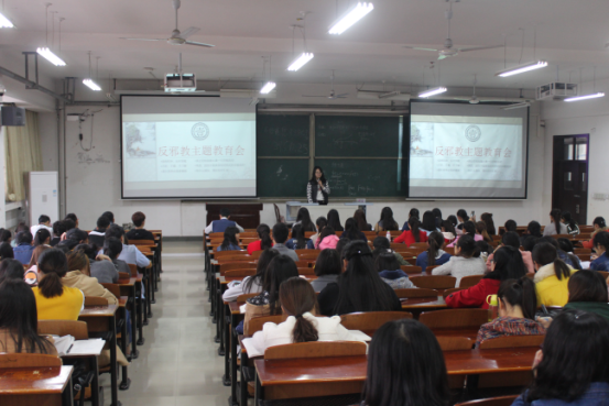 为了提高大学生识别、抵御和防范邪教的能力培养大学生正确的世界观、人生观,10月21日我院全体14、15级全体学生在三号教学楼3103举行了以“崇尚科学,反对邪教”为主题的教育活动主题教育会由辅导员孙维佳老师主持召开。