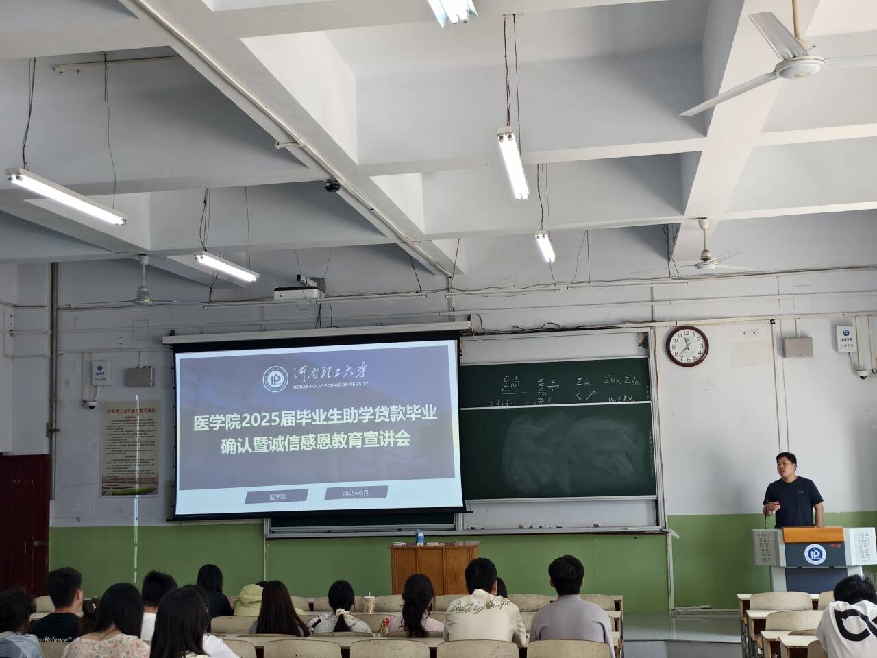 为贯彻落实国家资助政策,强化医学院毕业生诚信履约意识,5月22日,医学院开展2025届毕业生助学贷款毕业确认暨诚信感恩教育宣讲会,全院助学贷款毕业生参会。