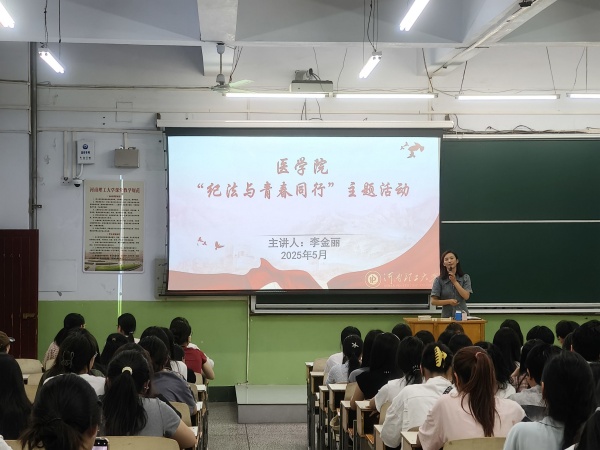 为强化学生干部法纪意识,充分发挥其模范带头作用,5月25日,医学院团委于2号楼2101教室开展“青春与法纪同行”主题活动。活动由团委书记李金丽主持,全体学生干部和新发展团员参加。
