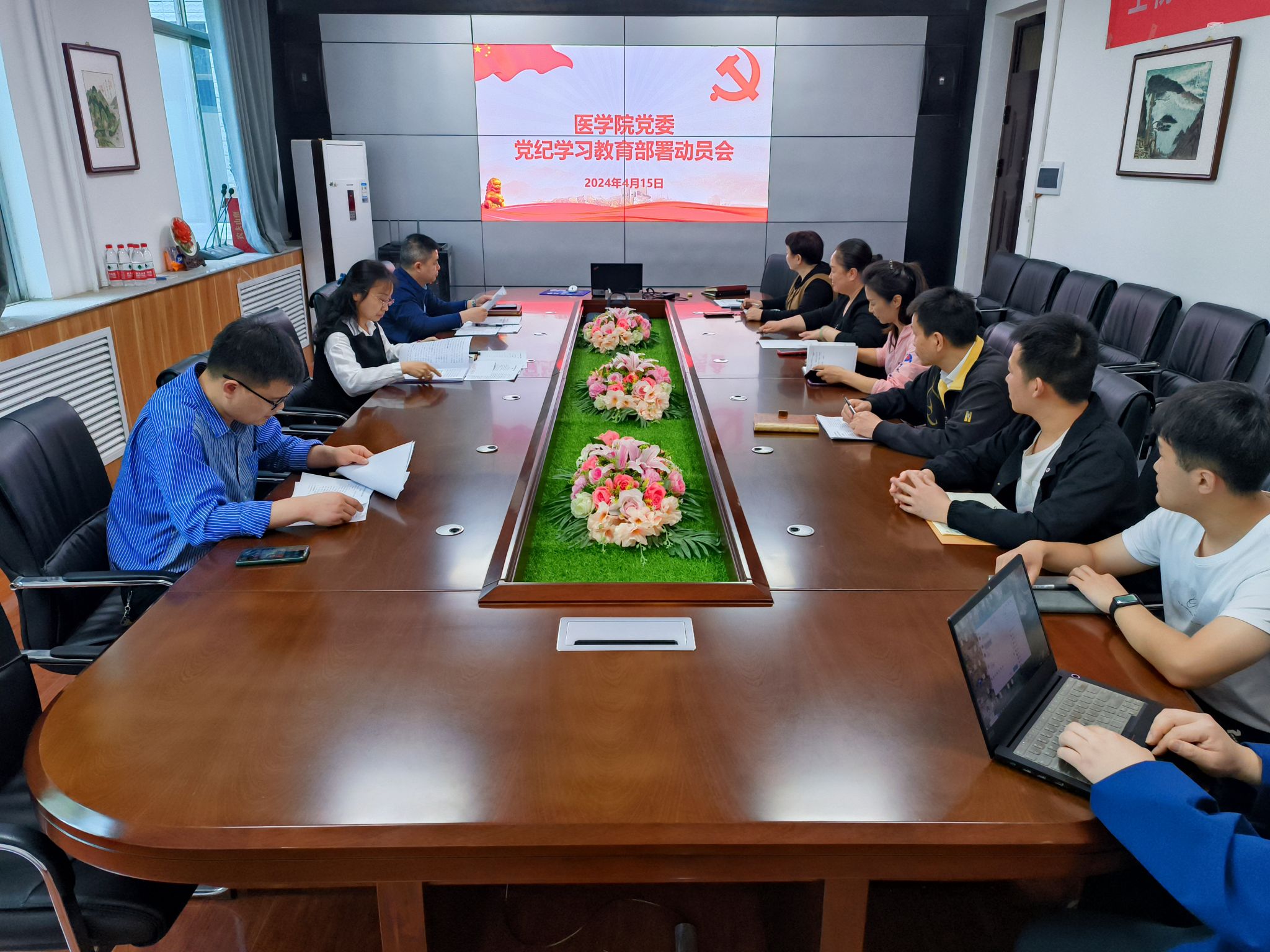 4月15日下午,医学院党委在223会议室召开党委扩大会议,部署开展党纪学习教育工作,学院党委委员、科级干部、系部(中心)主任、支部书记、支部纪检委员参会。医学院党委副书记(纪检委员)朱丹主持此次会议。