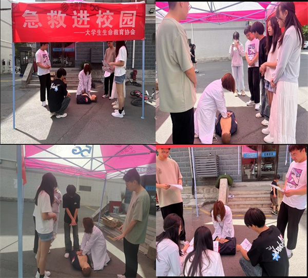 近年来,心脏病和呼吸窒息等突发疾病的高发率引起了人们对心肺复苏(CPR)急救技能的关注。针对这一重要议题,为了提高公众的心肺复苏意识和应急反应能力,一场心肺复苏讲解活动于2024年5月19日在北校区学林餐厅门口举行。