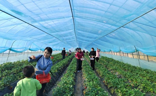 3月8日,在现代草莓农业园区,在一片大美春光中,大家跨进草莓大棚内,沿着整齐的草莓田,化身快乐的小果农,采摘、品尝、合影、畅谈、交流,尽情享受着采摘草莓、品尝鲜果的乐趣,现场一片快乐。