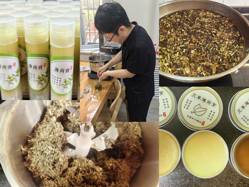“艾草薄荷膏制作”环节同样精彩。工会提供蜂蜡、艾草、薄荷、金银花等材料,教职工们按比例混合材料、隔水加热、灌装贴签,亲手制作出实用又美观的艾草薄荷膏。